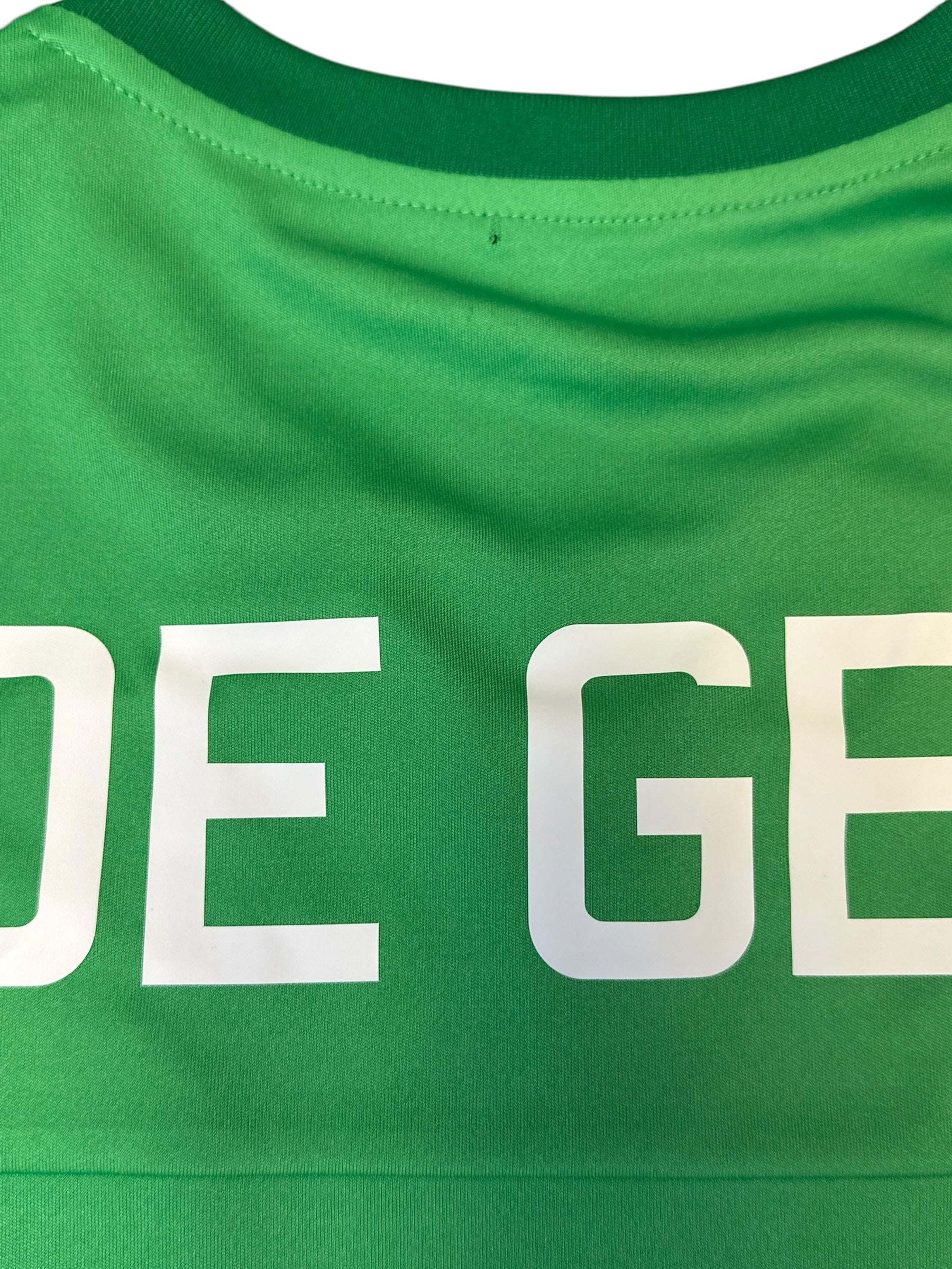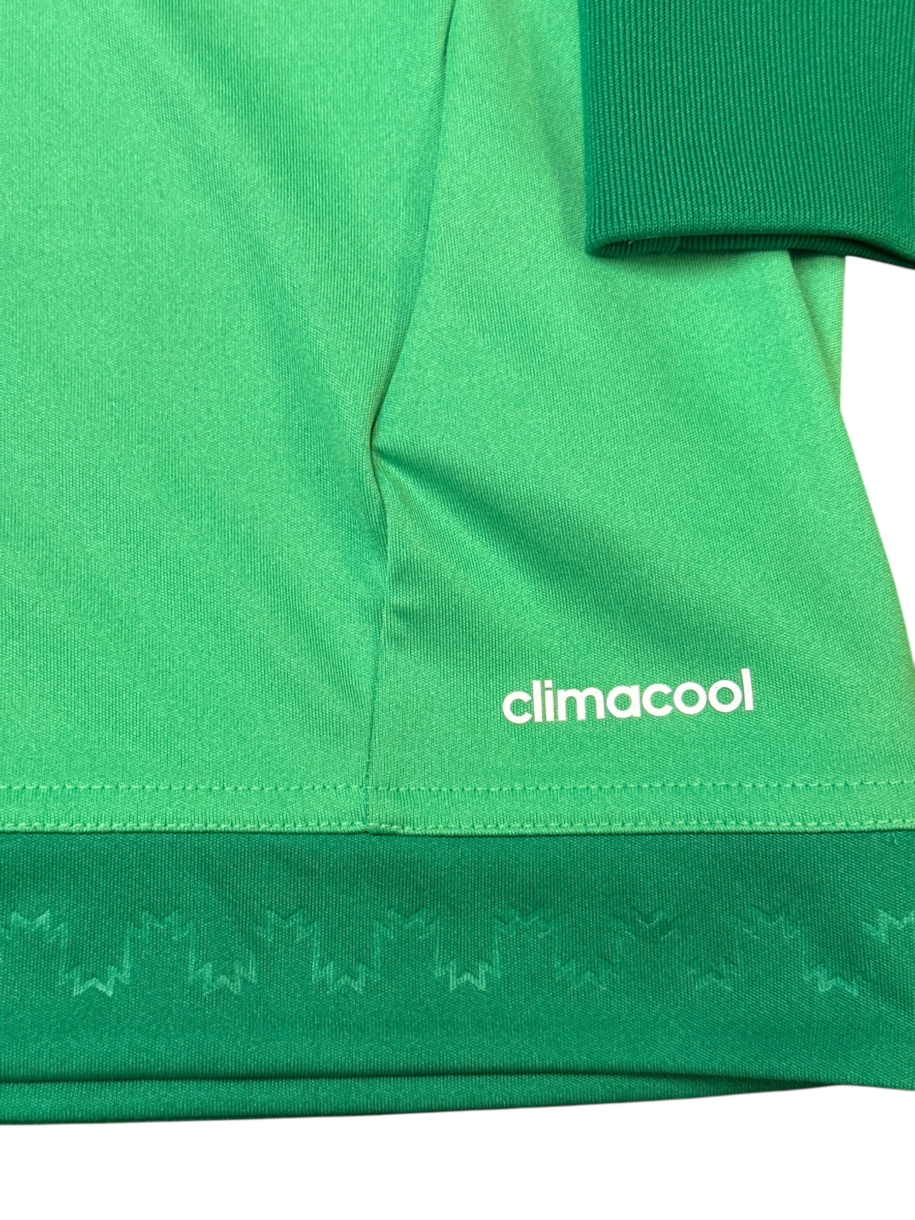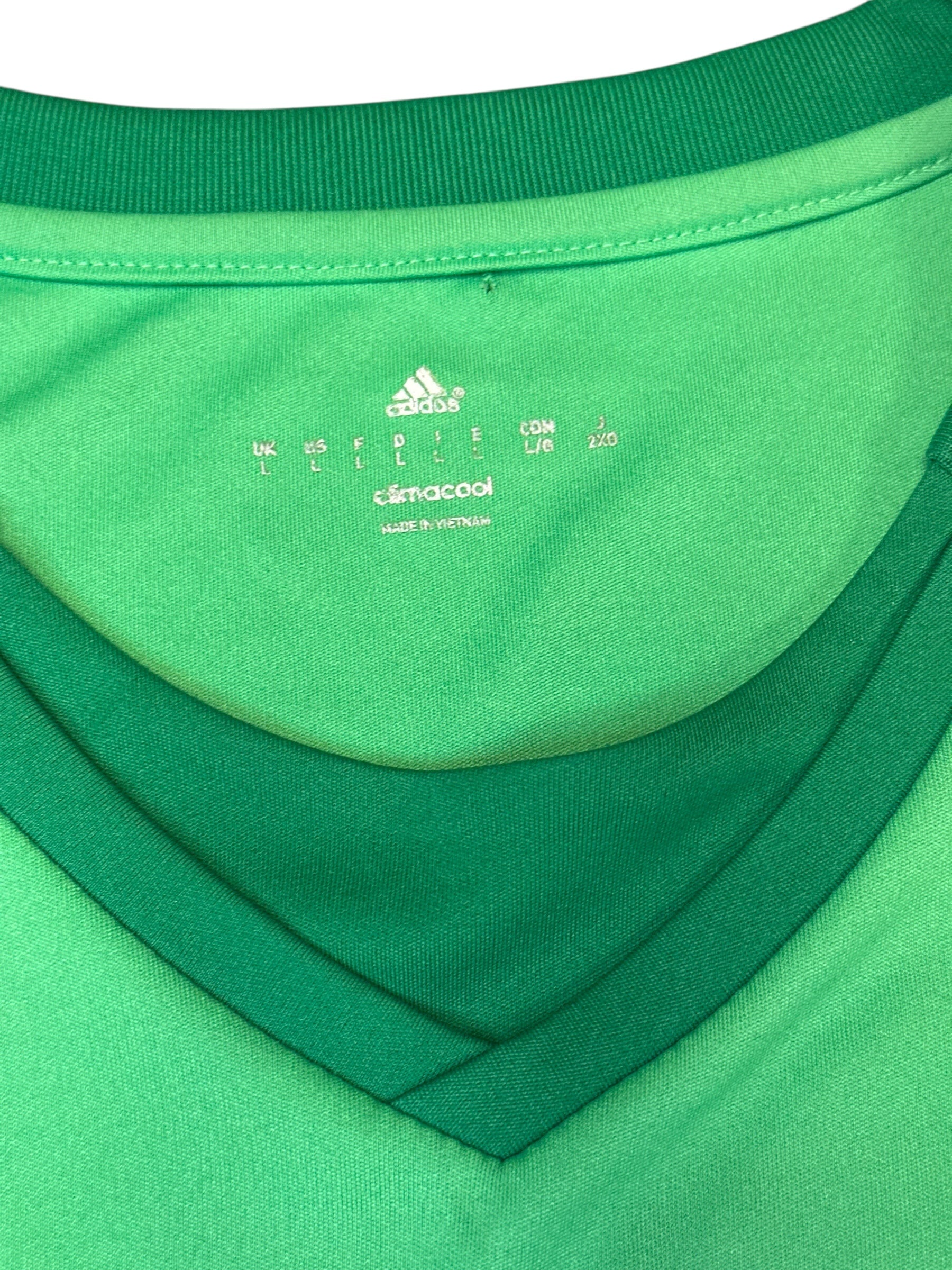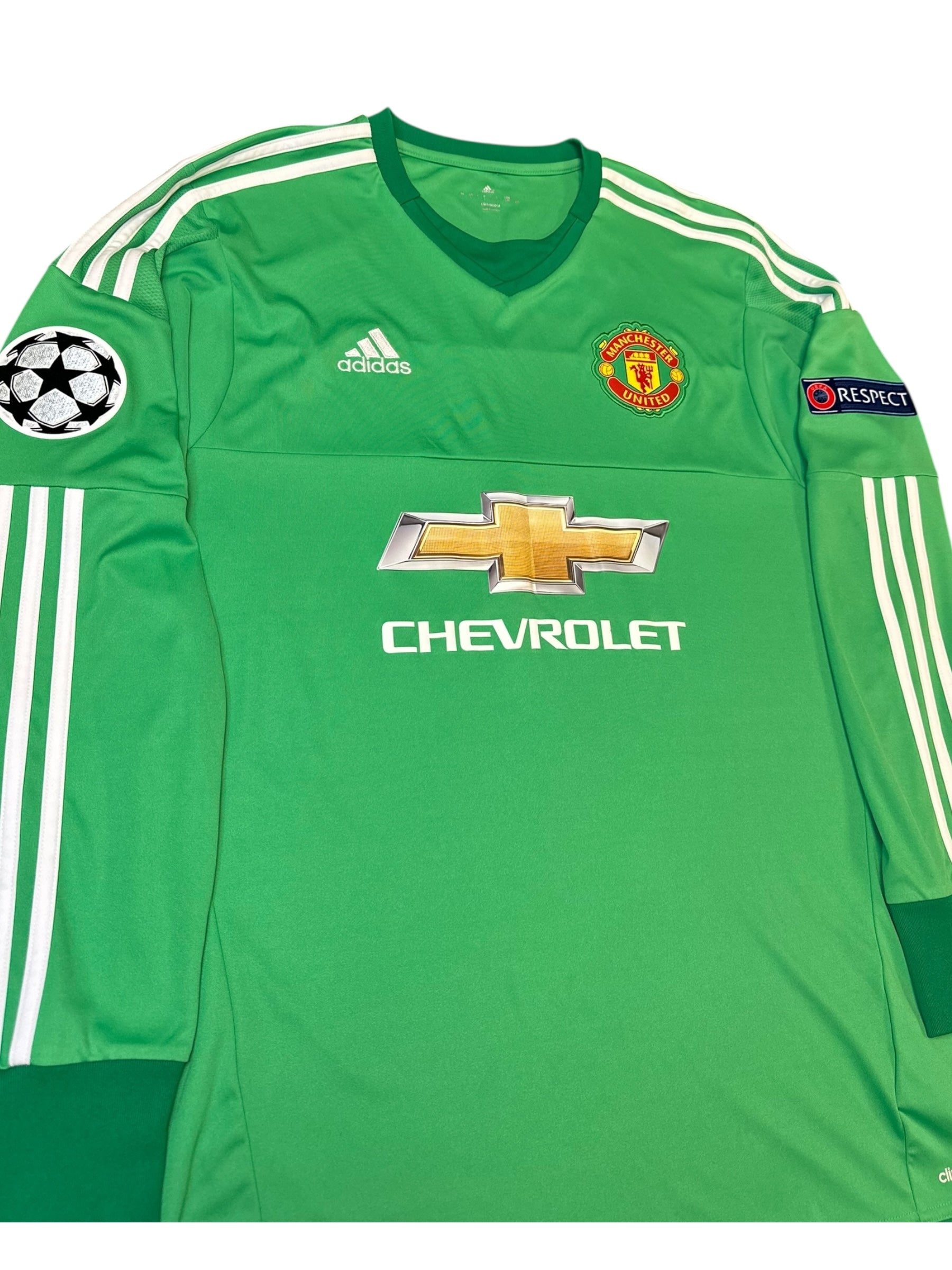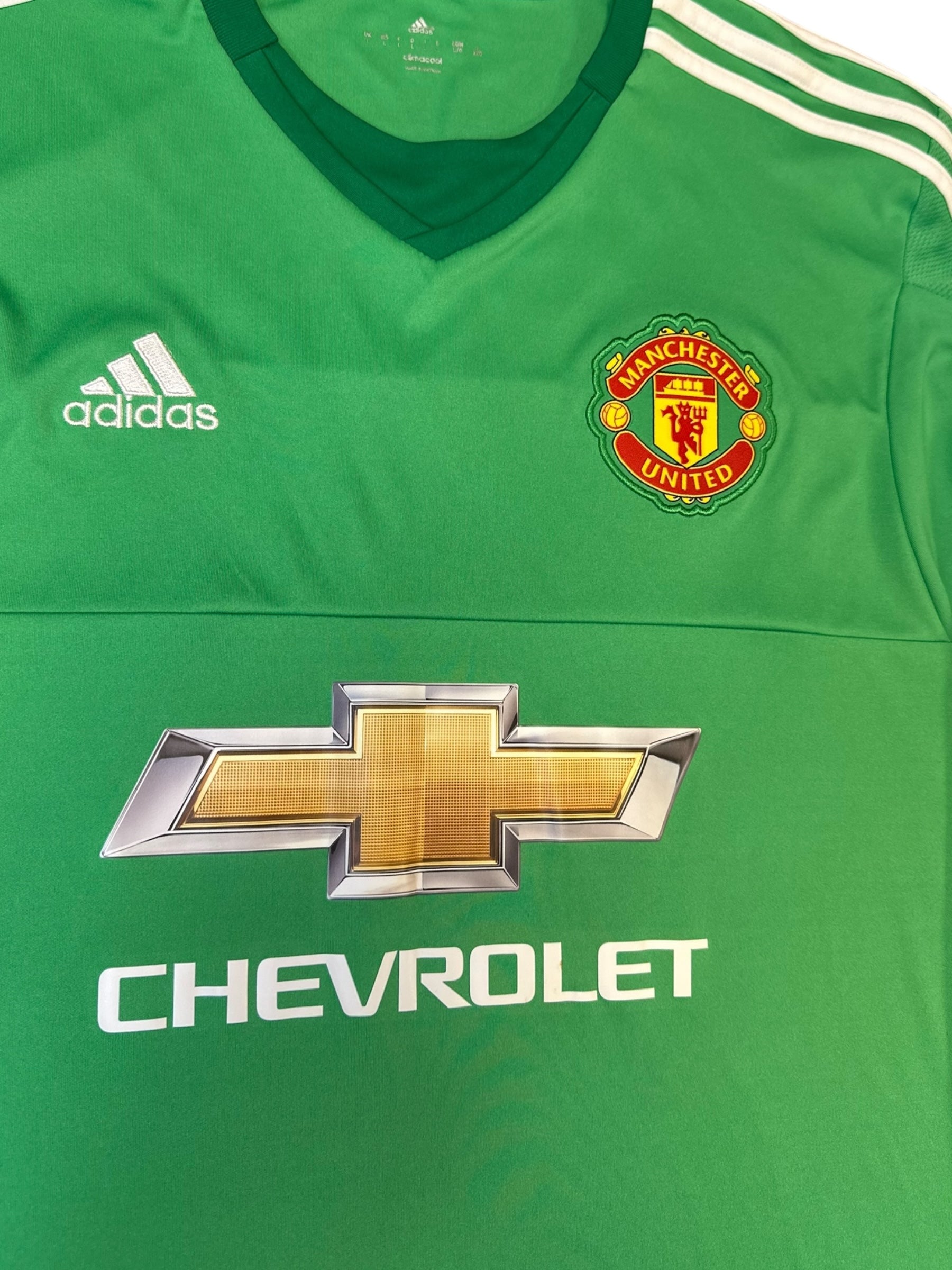 Adidas’ return to designing United kits starts here — the 2015/16 home shirt features a modern v-neck and bold red body, paying tribute to the 1980s look. Worn by David De Gea in goal during a transitional season under Van Gaal. Large fit, #1 on the back. A modern classic for shot-stopper fans.